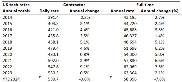UK Tech Contractor and Full time salary since 2014 (£): Going down