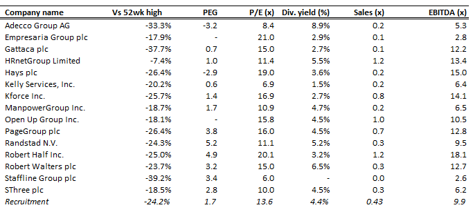 Q3 revenue -3% to US$4.7bn with a “challenging operating environment in North America and Europe”. Gross profit margin was 17.6% as staffing margins were resilient but permanent recruitment demand weakened. Jonas Prising, Chairman & CEO, also commented that “we continued to see solid demand across Latin America and Asia Pacific Middle East” but the current operating environment “is difficult for our industry”. Guided down Q4 earnings.