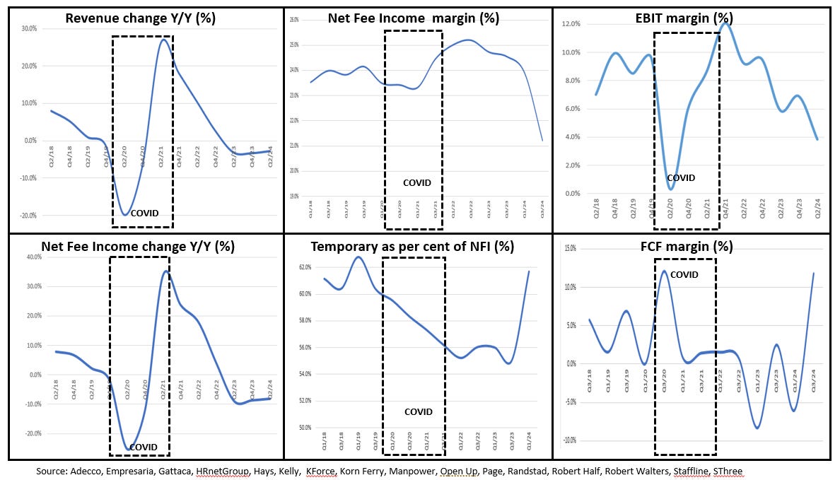 CEO Nicholas Kirk: "We continued to see challenging market conditions throughout the Group in Q3, with no improvement in September after the seasonally quieter summer months. Whilst most markets were sequentially stable, we experienced softer activity and trading in a number of European countries including France and Germany.” Also, recruitment budgets have tightened slowing the recruitment process, impacting time-to-hire. In addition, salary offers made to candidates were not as high as they were in 2022 and early 2023.